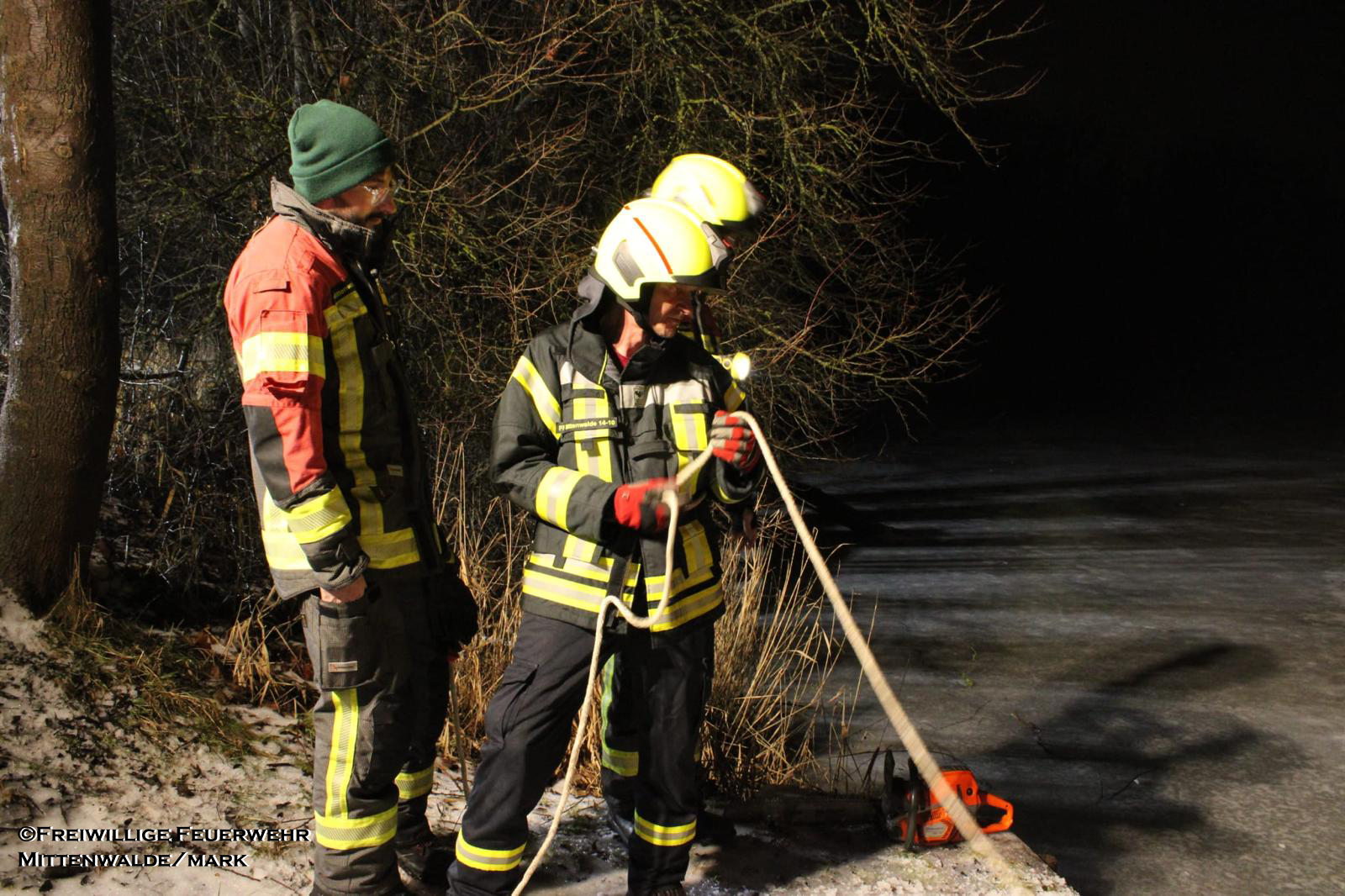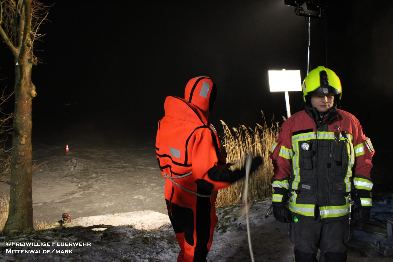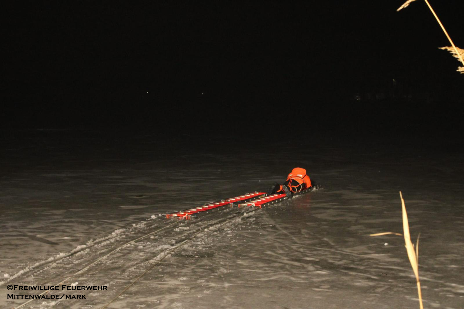 Am 06.02.2026 folgte ein praxisnaher Ausbildungsdienst zum Thema „Eisrettung“. Aufgrund der anhaltend frostigen Temperaturen und zugefrorener Gewässer im Einsatzgebiet besaß dieses Thema besondere Aktualität. Nach einer theoretischen Einweisung zu Gefahren, Einsatztaktik und Eigensicherung am See wurden im praktischen Teil am Tonsee realitätsnahe Szenarien trainiert. Geübt wurden unter anderem das Vorgehen mit Steckleitern zur Lastverteilung auf dem Eis sowie der Einsatz von Rettungsleinen. Der Grundsatz „Eigensicherung vor Fremdrettung“ stand dabei stets im Mittelpunkt. Die Übung verlief ohne Zwischenfälle und verdeutlichte die Bedeutung regelmäßiger Ausbildung für seltene, aber risikoreiche Einsatzlagen.