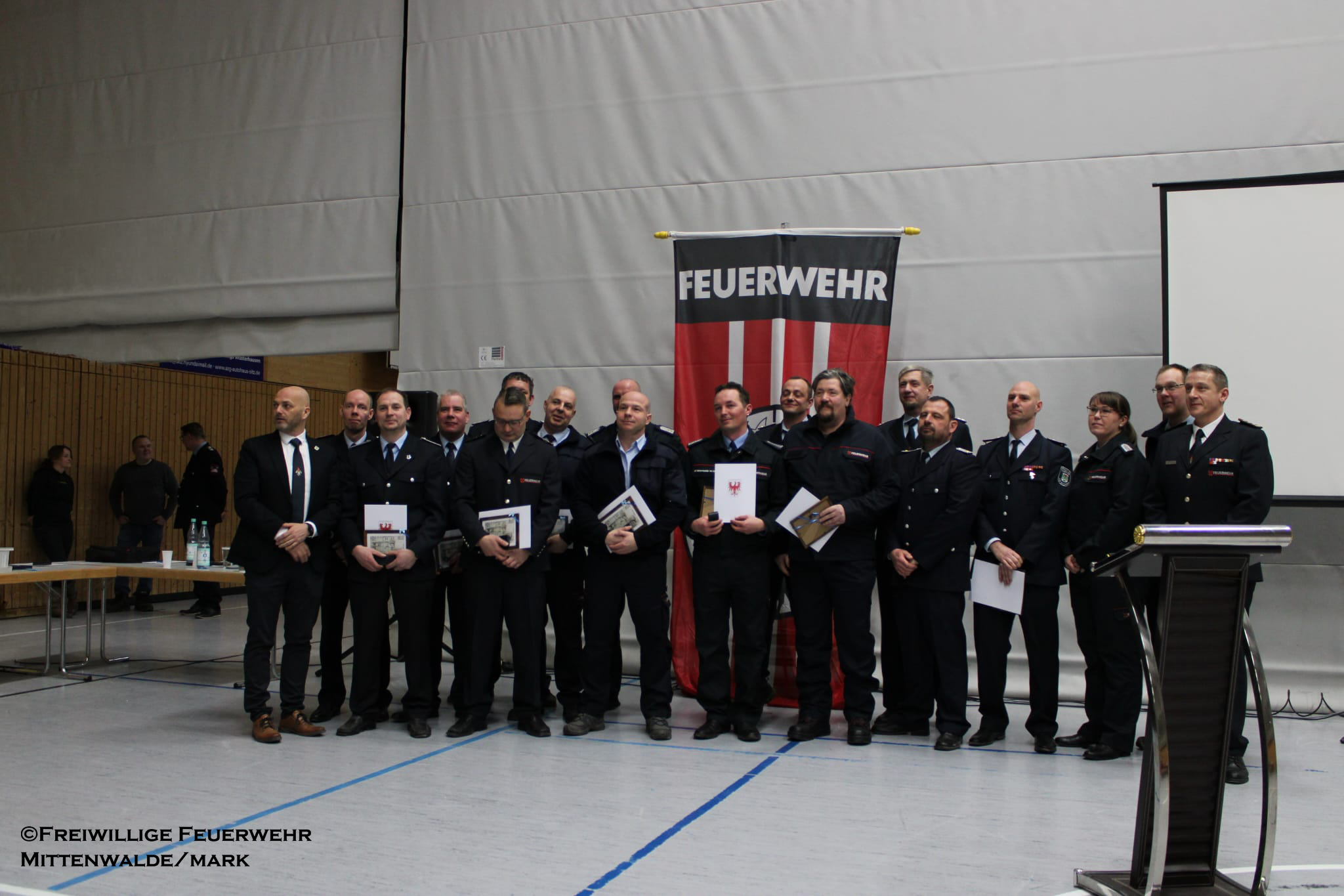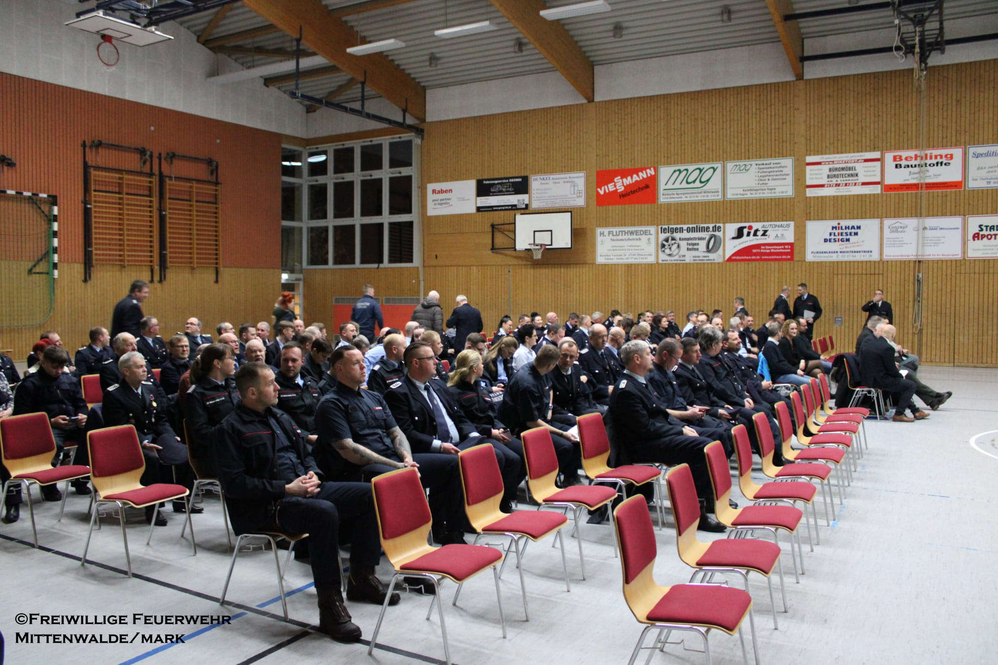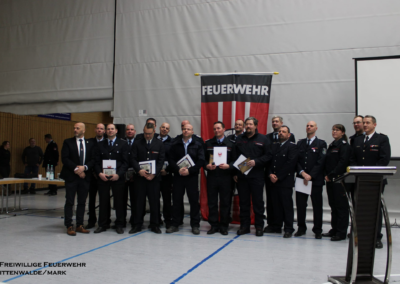 Ein zentraler Höhepunkt des Monats war die Jahreshauptversammlung am 13.02.2026 in der Mehrzweckhalle Mittenwalde. Nach der Eröffnung durch den Stadtbrandmeister folgten die Jahresberichte 2025 der Stadtjugendführung sowie der Stadtwehrführung. Die Feuerwehr Mittenwalde zählt insgesamt 428 Mitglieder, davon 240 in der Einsatzabteilung – darunter 49 Frauen. Im Jahr 2025 wurden 539 Einsätze bewältigt (287 Technische Hilfeleistungen, 239 Brandeinsätze, 13 Katastrophenschutzeinsätze). Dies entsprach 3.811 Einsatzstunden. Zusätzlich wurden 22.182 Stunden Aus- und Fortbildung geleistet. Insgesamt investierten die Kameradinnen und Kameraden somit 25.993 Stunden ehrenamtliche Arbeit für die Sicherheit der Bürgerinnen und Bürger.