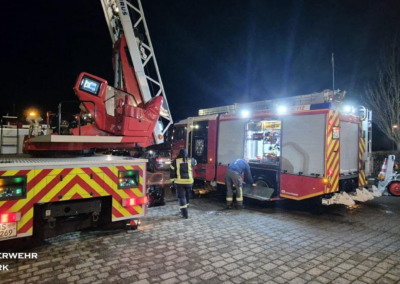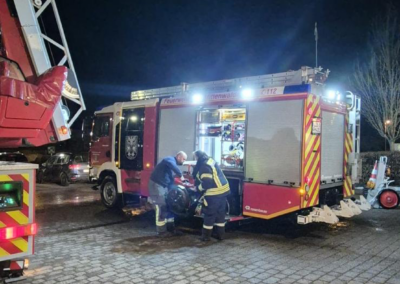 Den Abschluss der Monatsdienste bildete am 24.02.2026 der Technische Dienst im Gerätehaus. Hier wurden sämtliche Einsatzfahrzeuge und Geräte überprüft, gewartet und gereinigt. Kontrolliert wurden unter anderem Beleuchtung, Sondersignalanlagen, Pumpen, Stromerzeuger, hydraulische Rettungsgeräte, Schläuche sowie Atemschutztechnik. Kleinere Mängel wurden unmittelbar behoben und Verbrauchsmaterial ergänzt, sodass alle Fahrzeuge und Geräte als einsatzbereit gemeldet werden konnten.