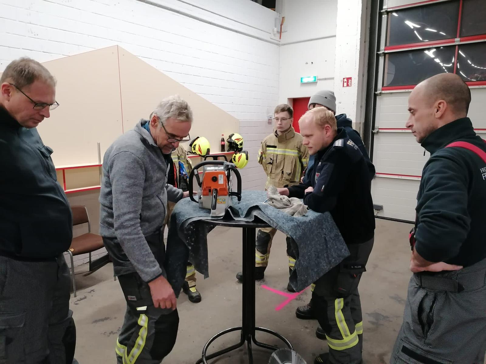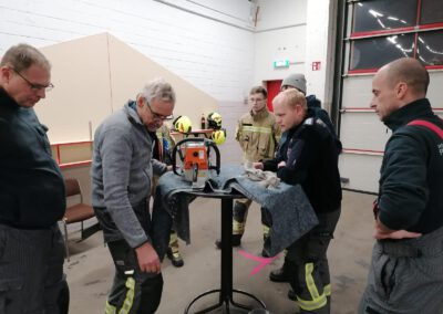 Als Übungsort diente diesmal das Feuerwehrgerätehaus in Bestensee. Nach einer kurzen Einführung durch die Zugführung wurden die teilnehmenden Einsatzkräfte in vier Teams eingeteilt. Ohne große Verzögerung startete anschließend die praktische Ausbildung. Ziel des Abends war es, vorhandene Kenntnisse aufzufrischen, Abläufe zu festigen und die Handhabung spezieller Technik unter realistischen Bedingungen zu trainieren. Die Ausbildung gliederte sich in die Themenbereiche Absturzsicherung, Arbeiten mit dem Paratech-Rettungsstützensystem, Einsatz der Motorkettensäge sowie die Nutzung maschineller Zugeinrichtungen.