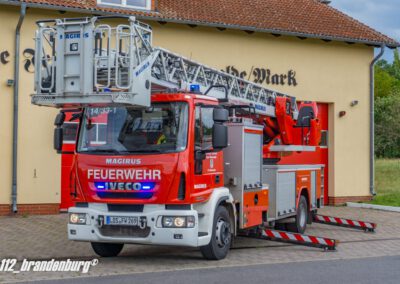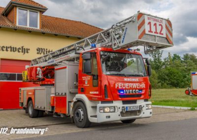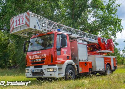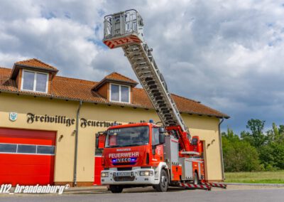 Wenn’s hoch wird, kommt sie ins Spiel: unsere Drehleiter mit Korb (Florian Spreewald 14/33-01). Ob Menschenrettung, Brandbekämpfung oder technische Hilfe in luftiger Höhe – mit dieser Leiter erreichen wir sicher jedes Stockwerk. 🔥🏢