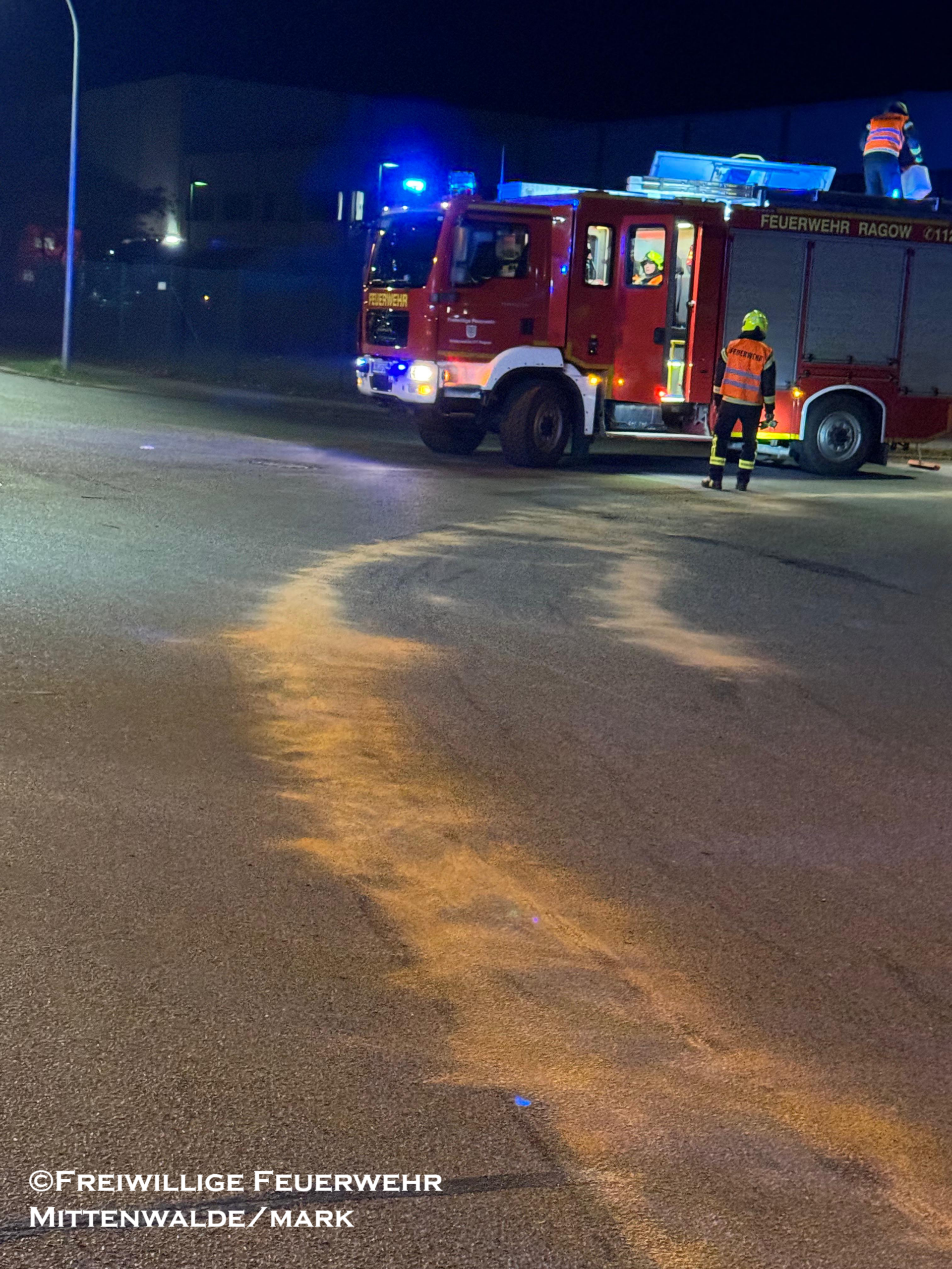 Durch unsere, gemeinsam mit der Ortswehr Ragow, getroffenen Maßnahmen wurde die Ölspur abgestumpft und eine weitere Ausbreitung erfolgreich verhindert.