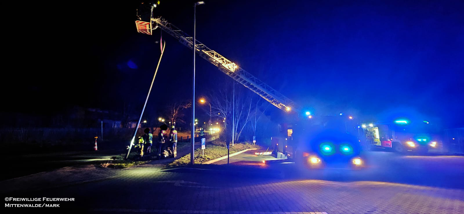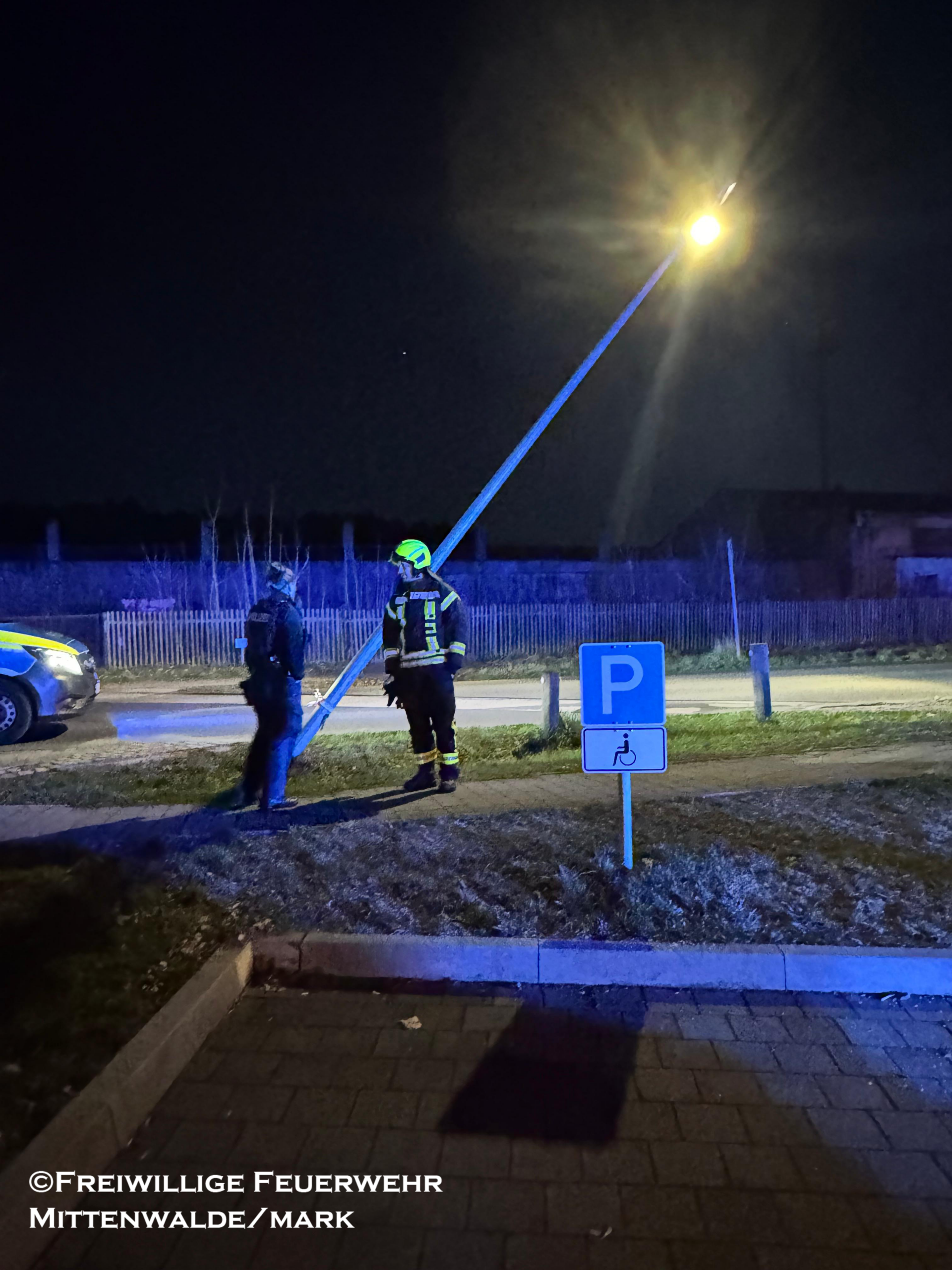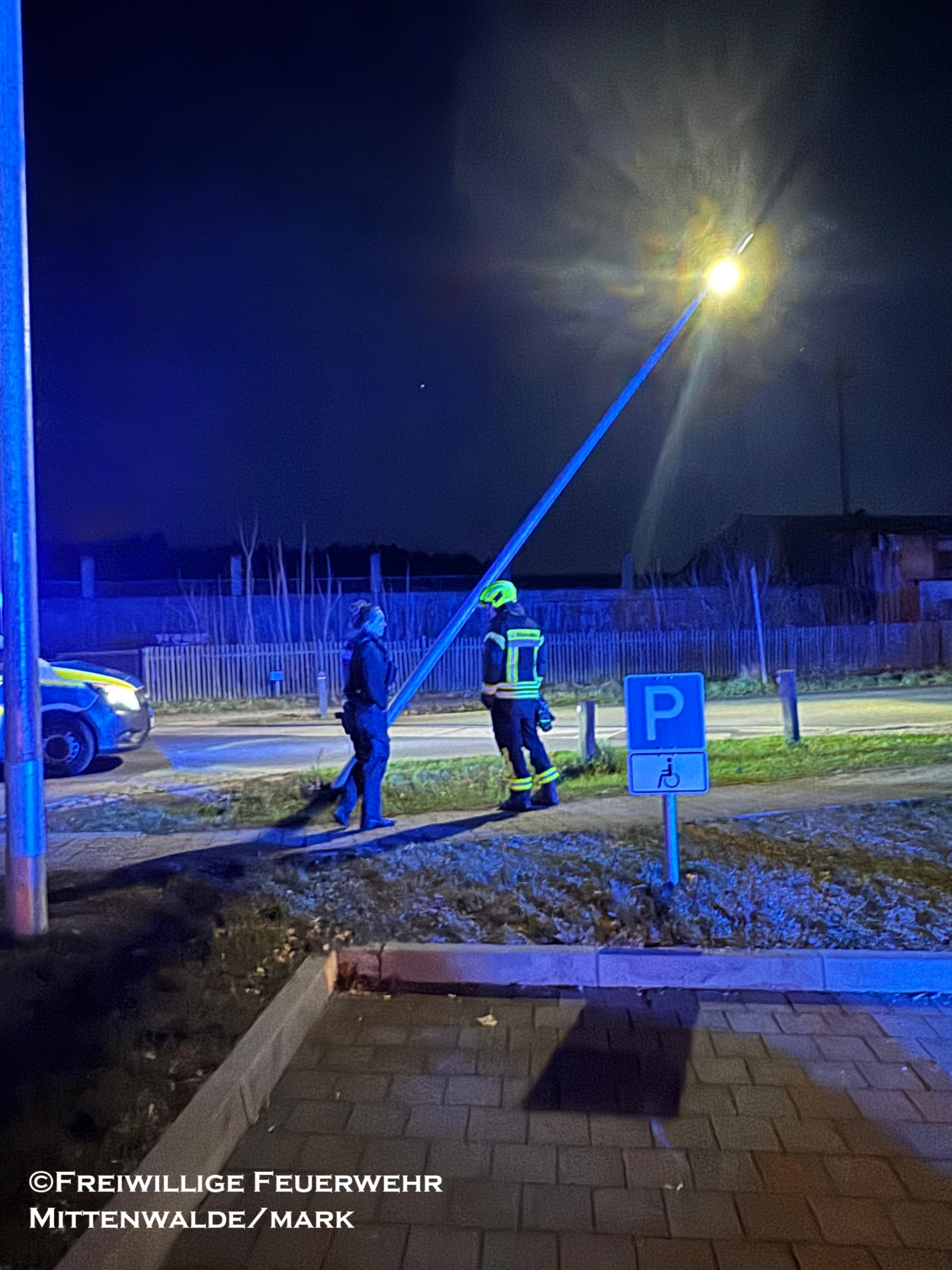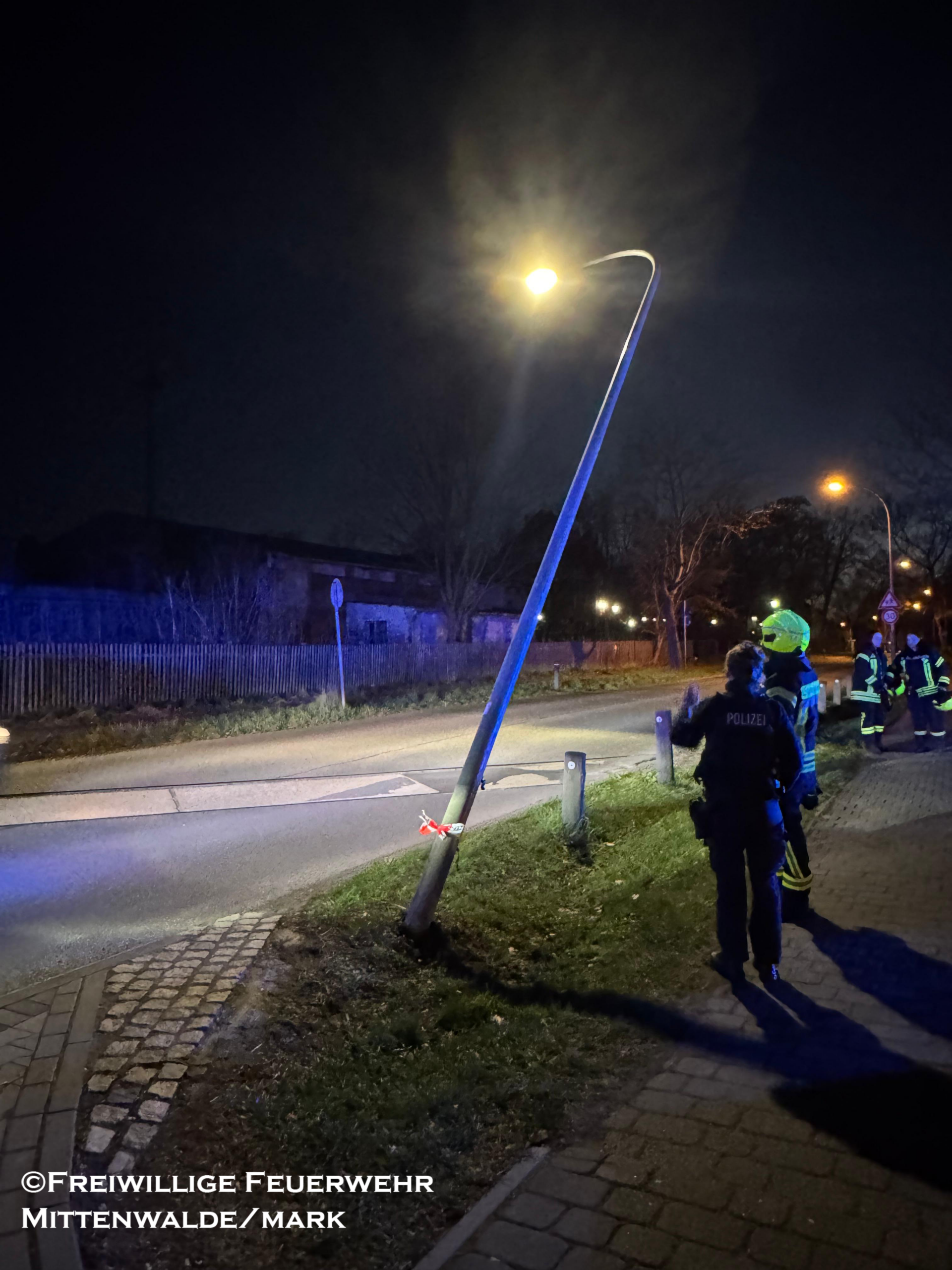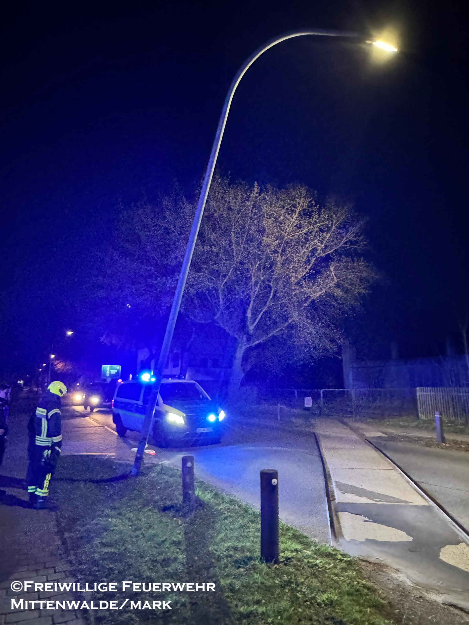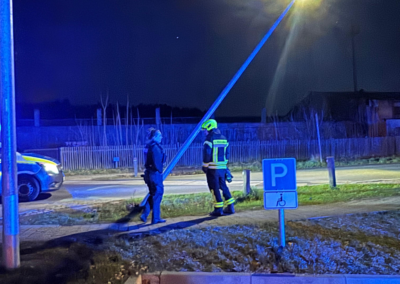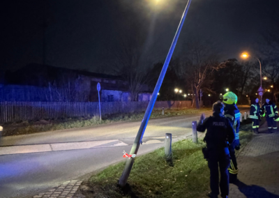 Am Mittwochabend wurden wir auf Anforderung der Polizei zu einer schrägstehenden Laterne nach einem Verkehrsunfall alarmiert.