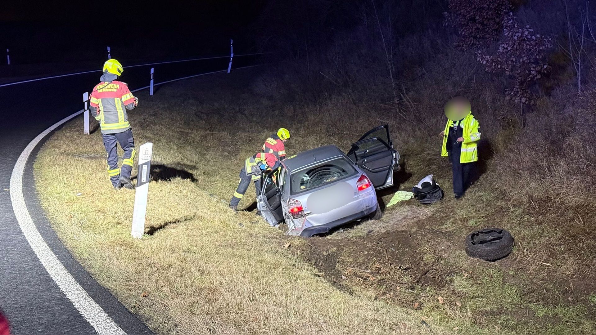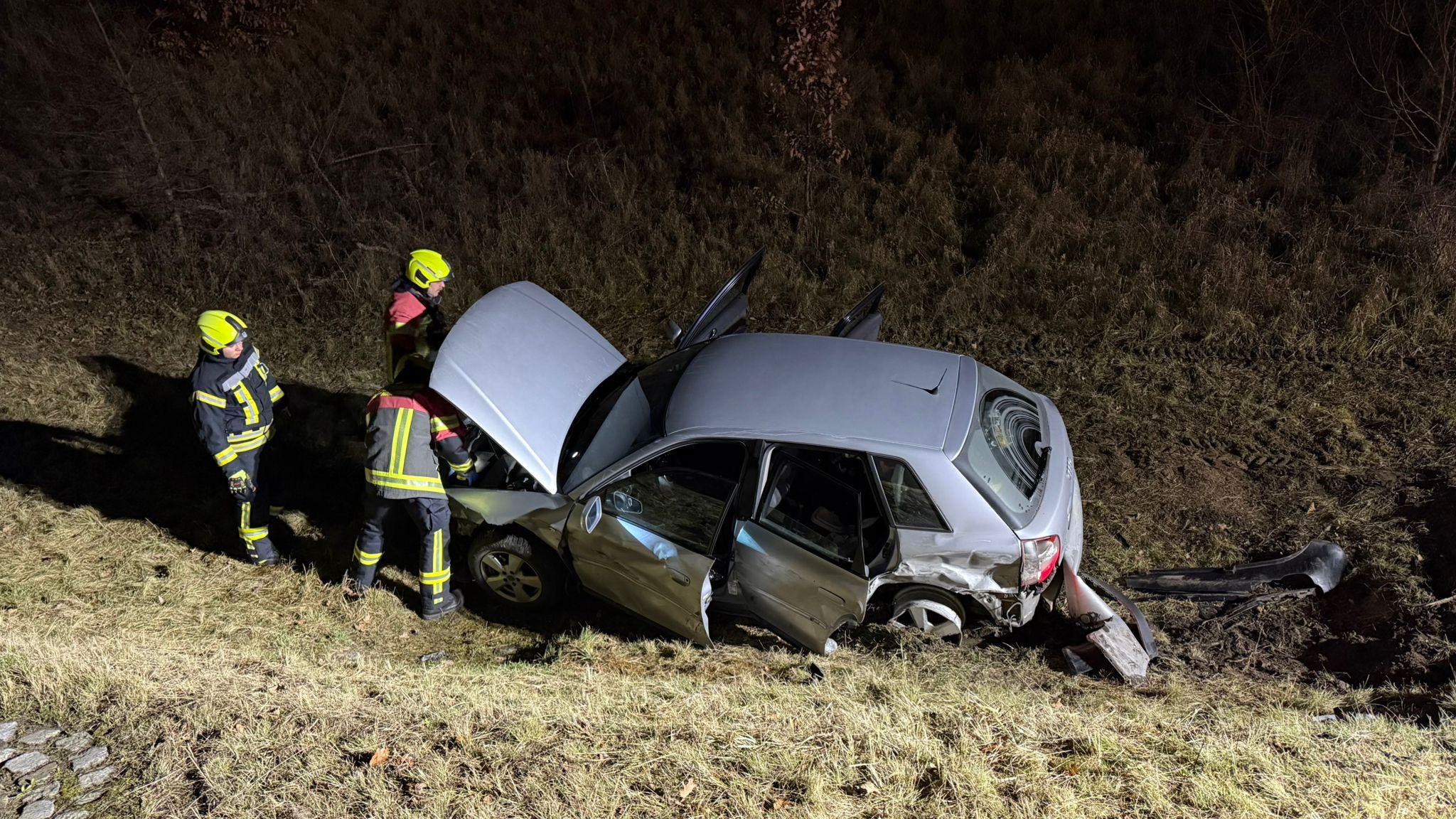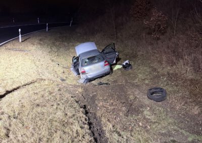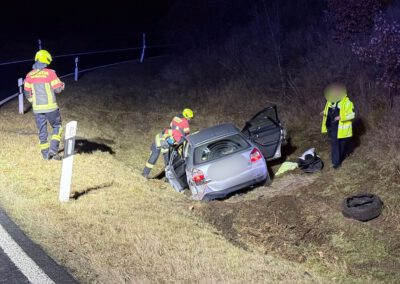 Vor Ort bestätigte sich die gemeldete Lage: Zwei PKW waren in den Unfall verwickelt, wobei eines der Fahrzeuge von der Fahrbahn abkam und im Straßengraben zum Stillstand kam.
