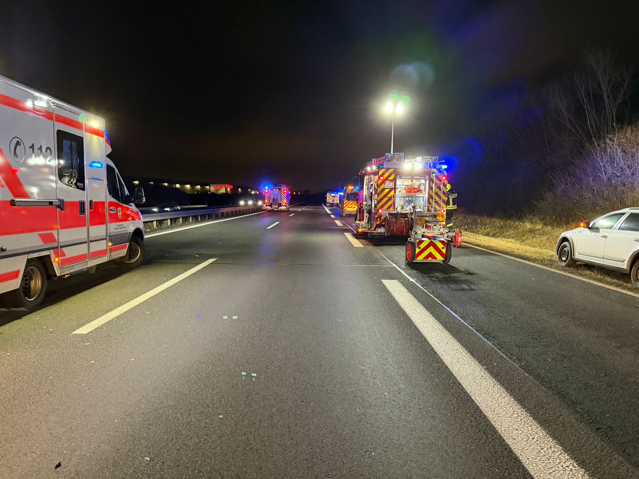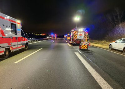 Am Abend des Neujahrstages wurden wir um 19:28 Uhr zu einem Verkehrsunfall auf die BAB 13 in Fahrtrichtung Berlin, im Bereich der Anschlussstelle Ragow, alarmiert.